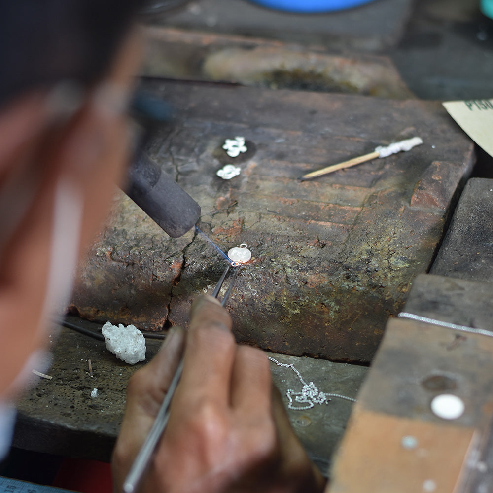 Each piece of jewelry is lovingly handcrafted just for you. Our silversmith, "Pak Gusti," is a true artist when it comes to setting the colorful sea glass from Bali and perfectly showcasing it on you. This way, you'll always carry warm rays of sunshine and a little piece of the ocean with you.